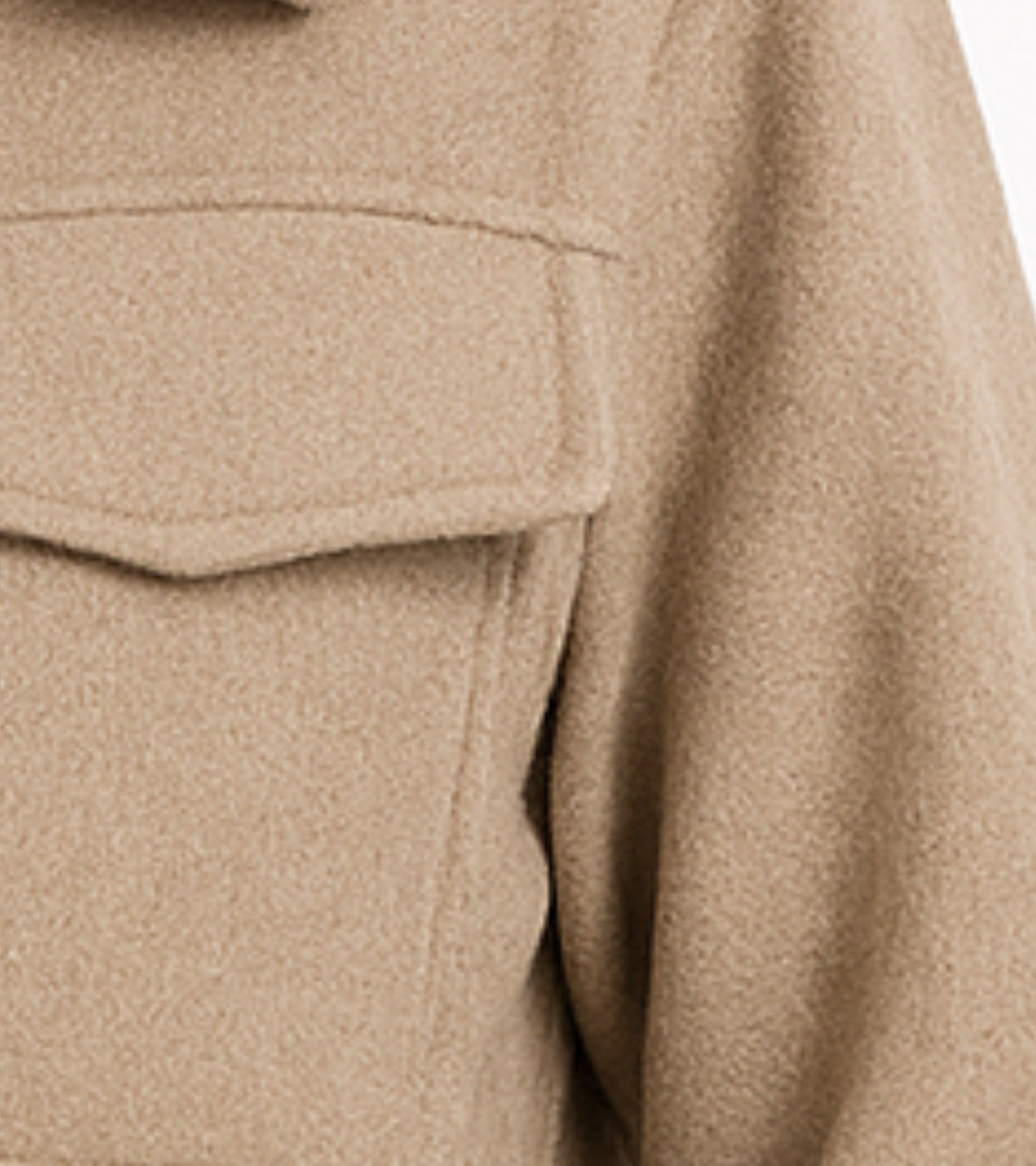 Chamarra Cropped de Lana Sintética, confeccionada en lana sintética suave con textura cálida y ligera.Diseño moderno con bolsillos frontales amplios, cierre metálico al frente y cuello camisero estructurado que aporta un toque sofisticado y versátil.