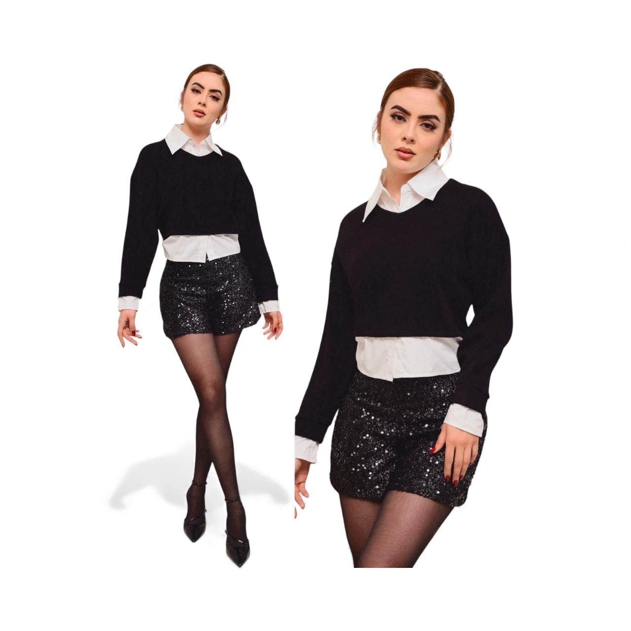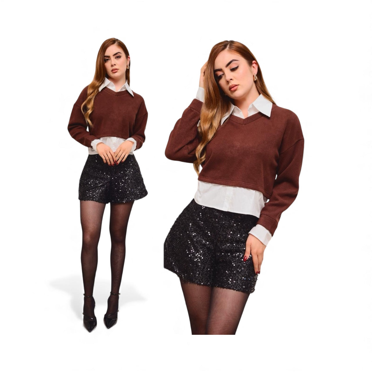 SUETER DOBLE PRENDA EN TEJIDO Y POPELINA