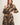 Este vestido midi confeccionado en popelina ligera, ideal para cualquier temporada. Su diseño combina elegancia y comodidad con un estampado de hojas en tonos camel y negro que aporta un estilo moderno y sofisticado.