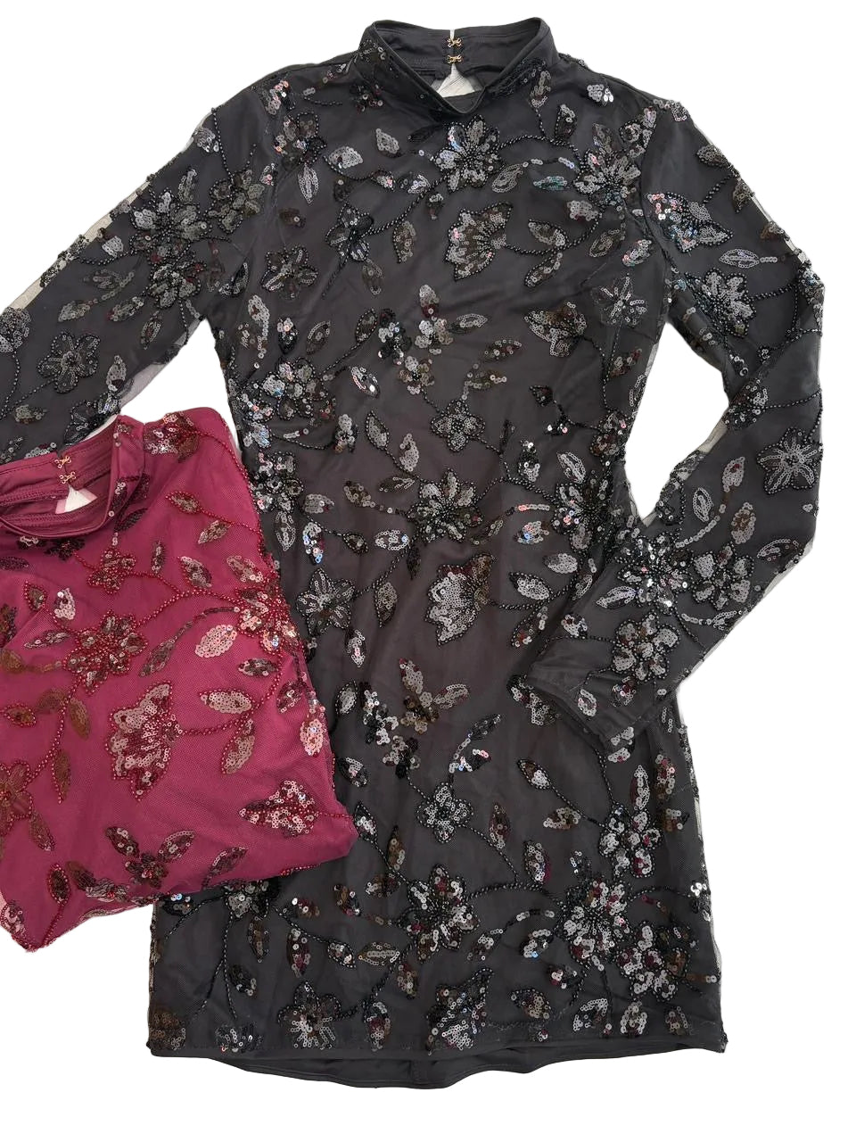 Confeccionado en tela mesh con bordado de lentejuela en diseño floral.Cuenta con espalda descubierta tipo cut out, que equilibra sensualidad y clase.Corte entallado que realza la silueta y estiliza la figura.Largo mini, ideal para eventos de noche.Incluye forro interior, brindando comodidad y mejor ajuste