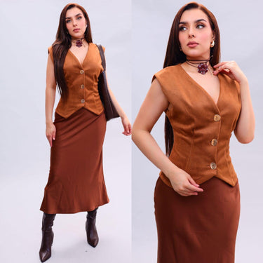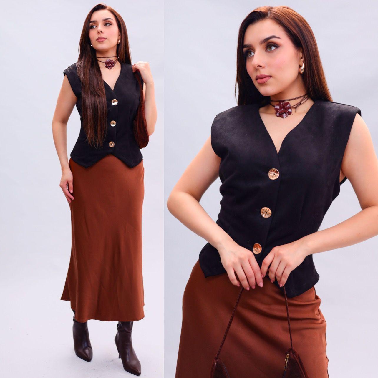 - Escote en “V” con corte estructurado que estiliza la figura.