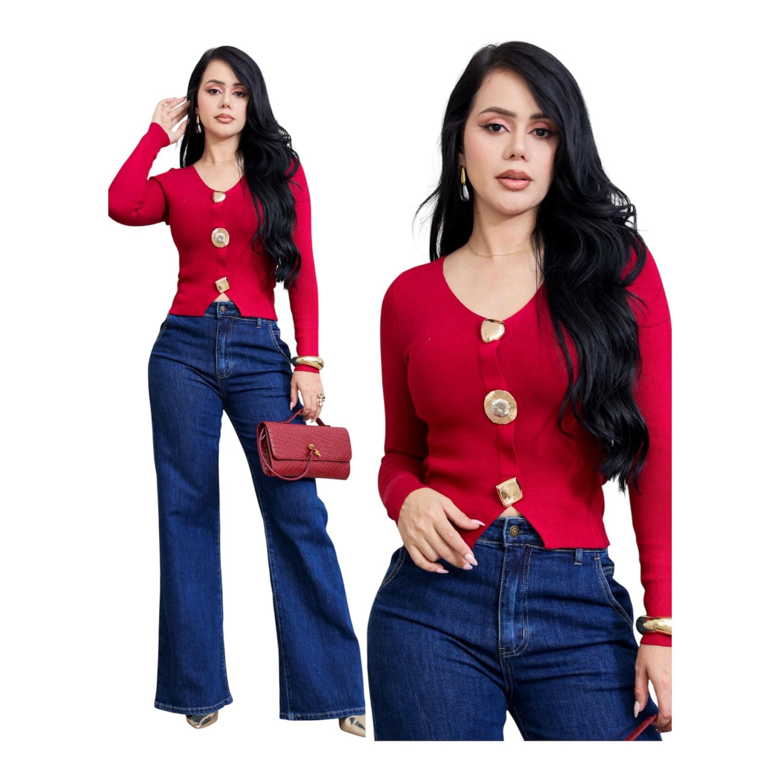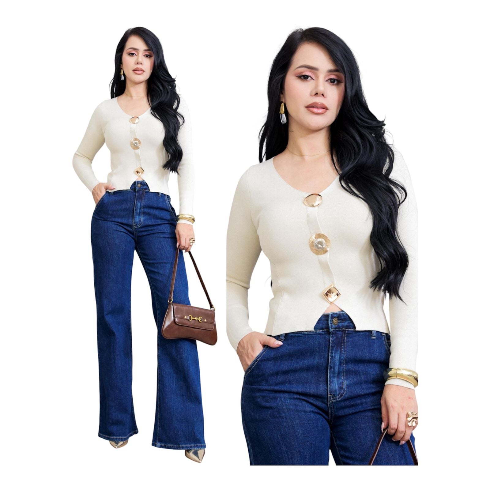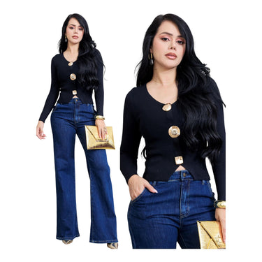 SUETER PUNTO TEJIDO CON BOTONES DORADOS