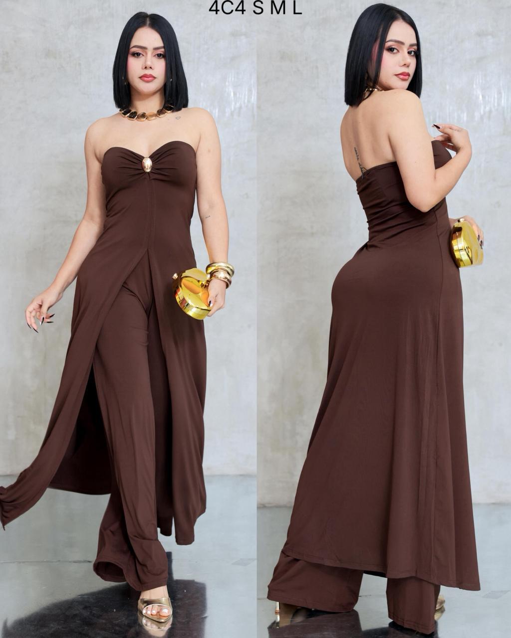 SET BLUSA STRAPLESS Y PANTALON WIDE LEG