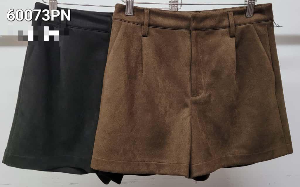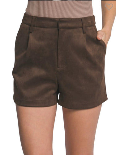 Short tipo sastre confeccionado en tejido de antelina (efecto gamuza), suave al tacto y con acabado aterciopelado que aporta elegancia y confort.