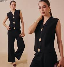 Set Chaleco y pantalón confeccionado en tejido de punto estructurado, de textura firme y ligera, que proporciona una silueta definida y moderna.