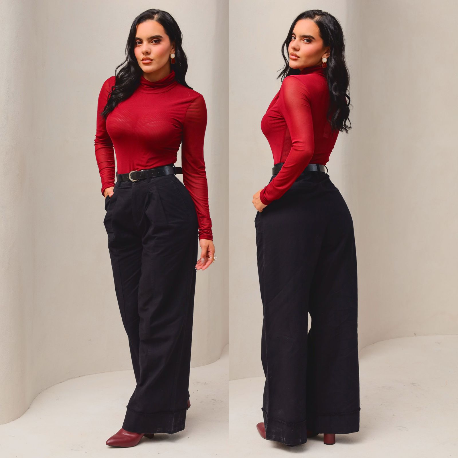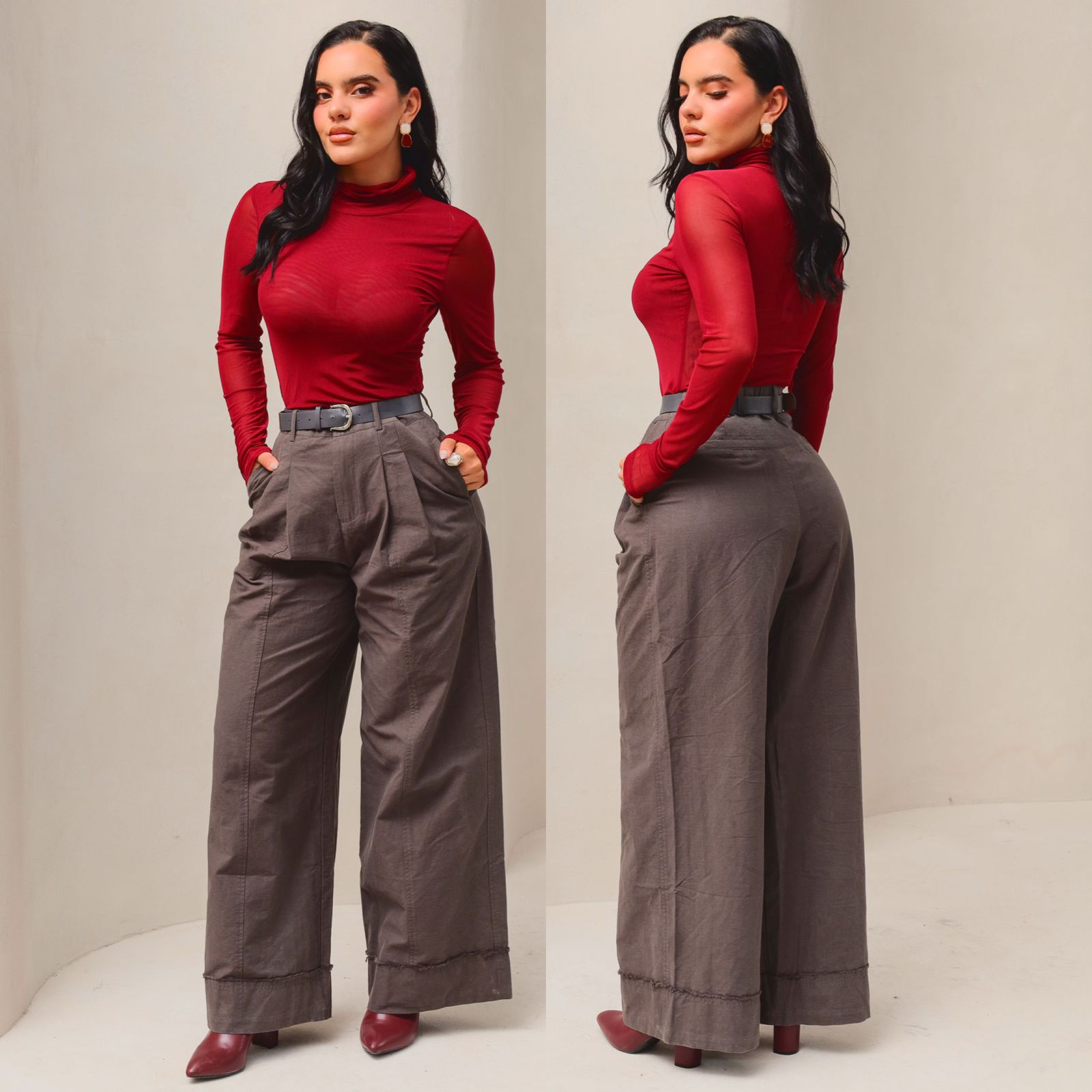 Diseño: Corte amplio tipo wide leg recto, suelto desde la cadera hasta el bajo, sin entallarse en el muslo ni en la pantorrilla.