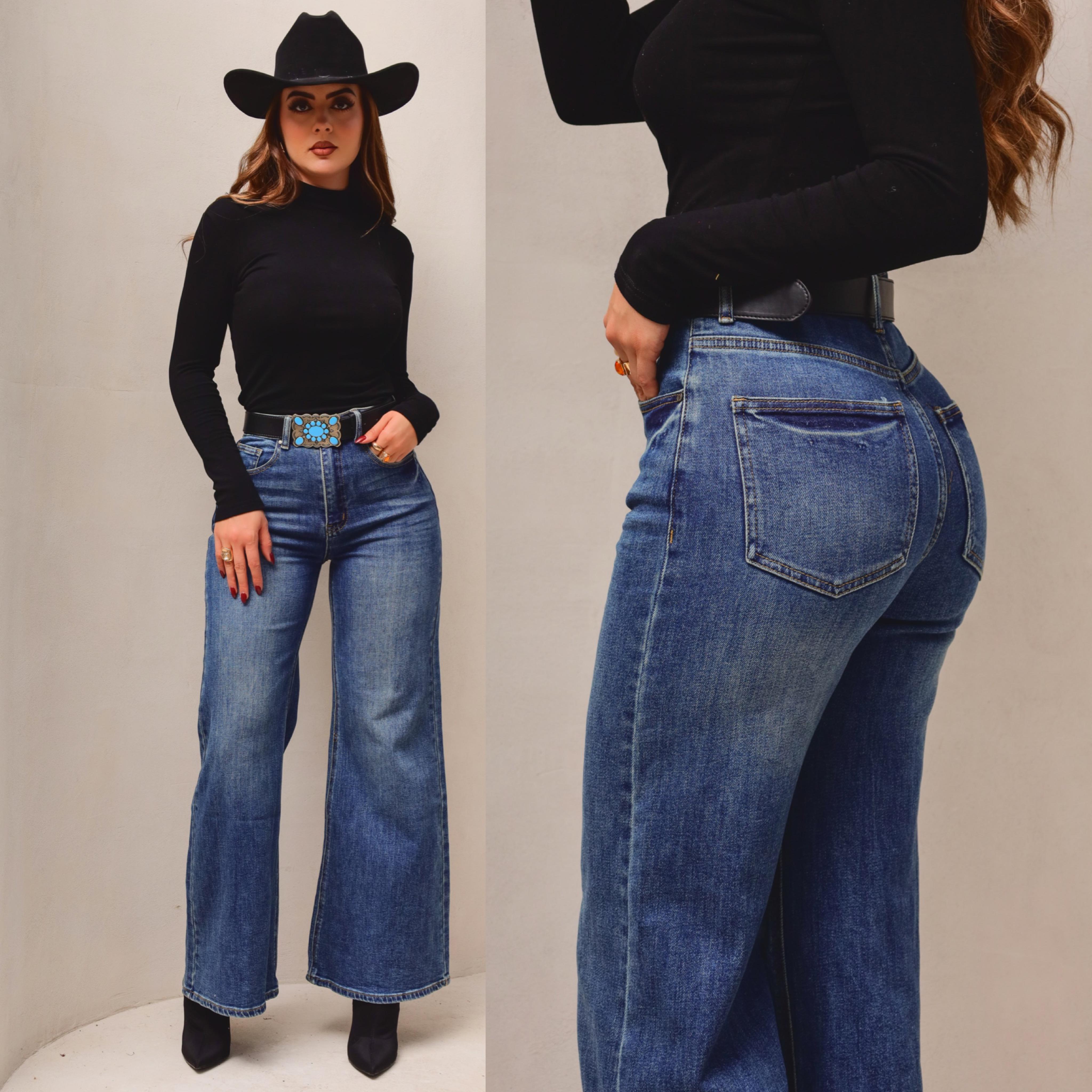 JEANS WIDE LEG CON CINTURON